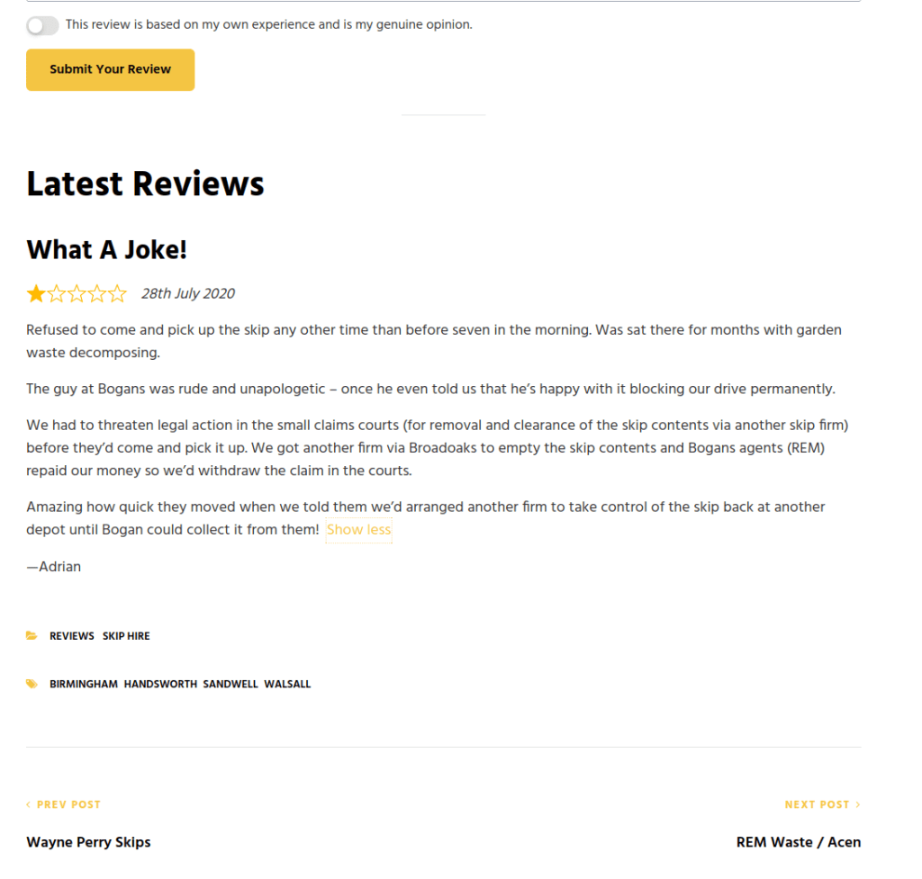 Website, add genuine reviews of genuine skip companies, search for UK-side skip companies and do a small amount of research on companies house to highlight problem areas.